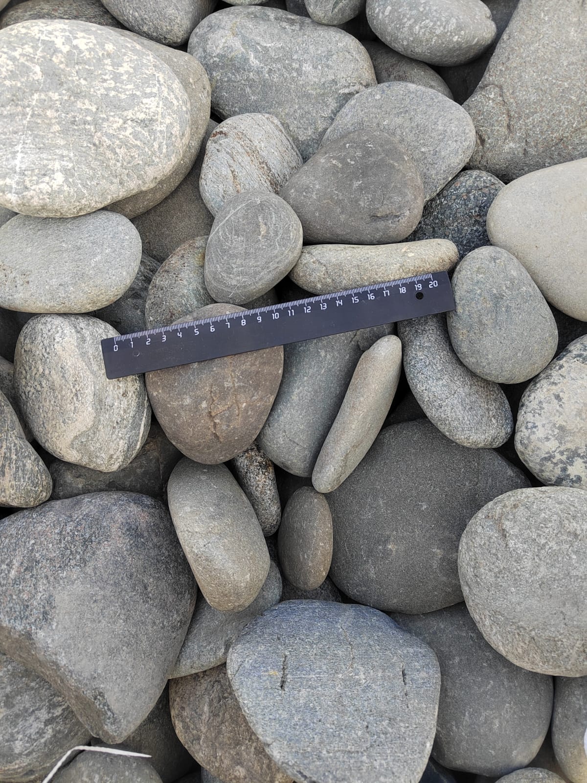 Плоская галька фракции 50-100 мм: удобный и недорогой декоративный материал.