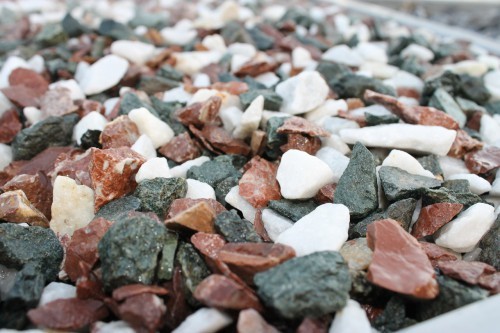 Kamenclub.ru: мраморная крошка (щебень крошка микс: белый-зеленый-розовый) фр. 10-20 мм. купить в Самаре - заказать природный камень по низким ценам оптом с доставкой от производителя - kamenclub.ru